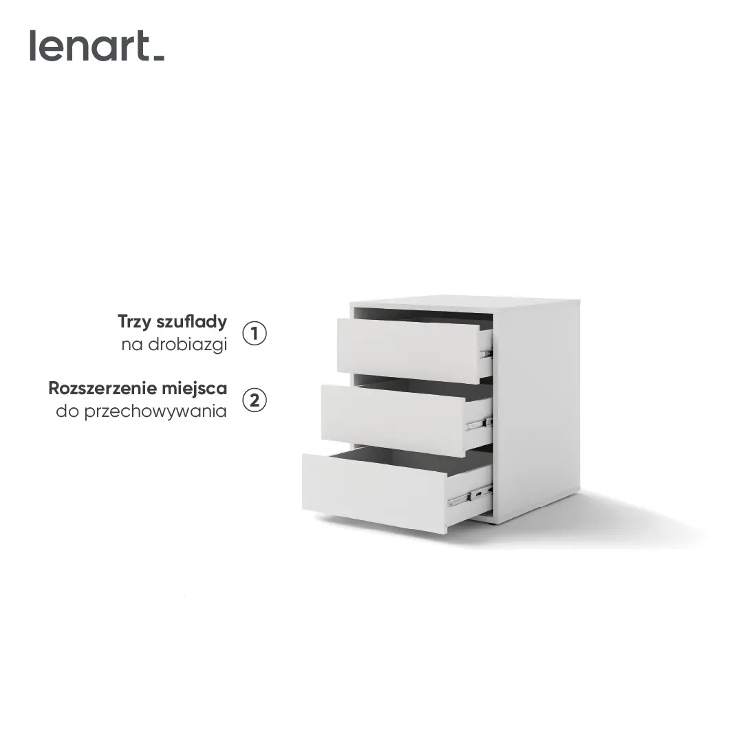 Dodatkowy kontenerek zwiększający możliwości przechowywania szaf z kolekcji MAXI. Dzięki niemu możesz lepiej dostosować do własnych potrzeb przestrzeń wewnątrz mebla. MX-07 może być wykorzystywany do gromadzenia mniejszych przedmiotów, takich jak bielizna czy kosmetyki. W trzech pojemnych szufladach zmieścisz wszystkie swoje ulubione akcesoria. Umieść kontenerek w szafie i ciesz się dodatkowym miejscem. Uporządkuj swoje rzeczy i mniej je zawsze na wyciągnięcie ręki.