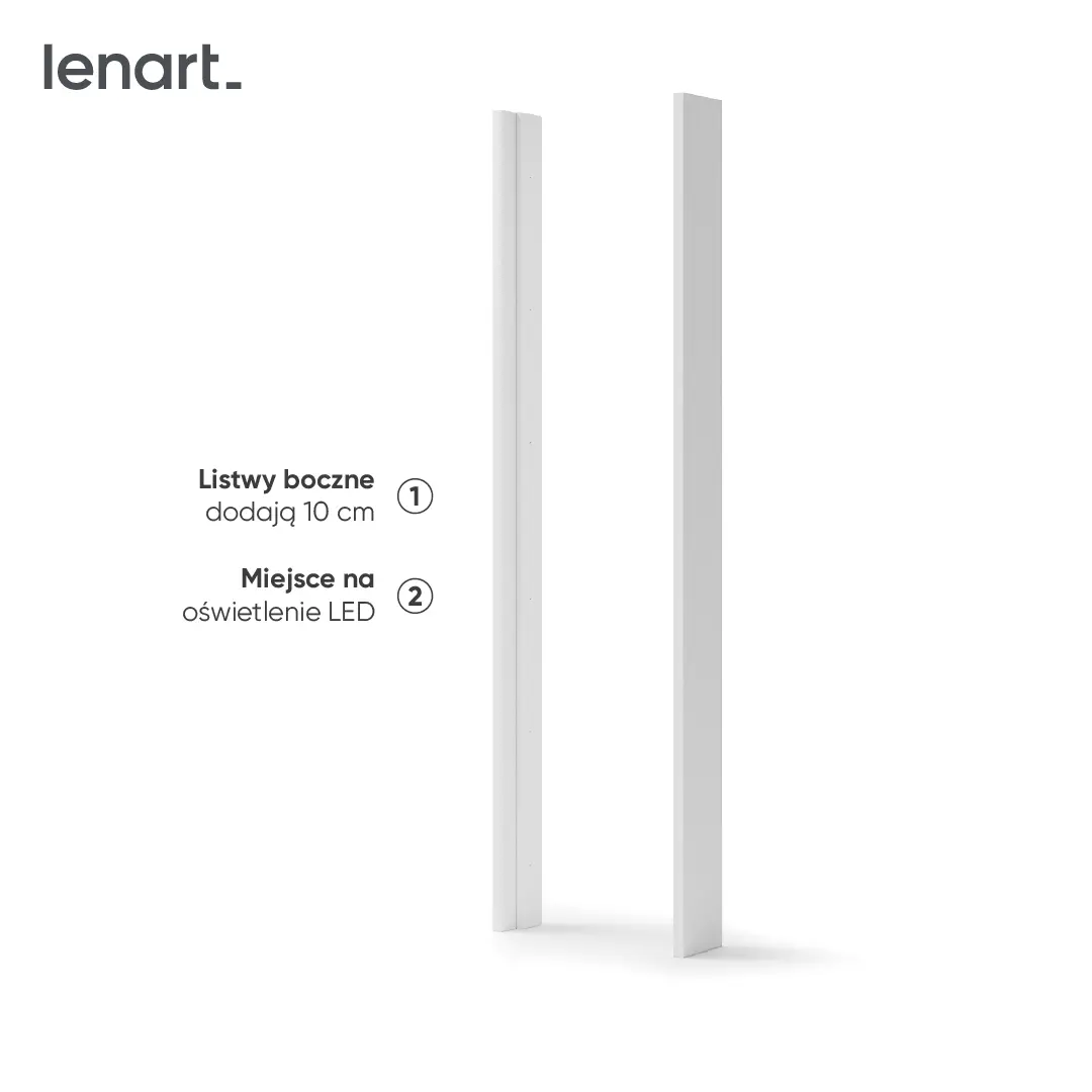 Dodatkowe listwy z oświetleniem LED do szaf z kolekcji MAXI. Montowane są na zewnętrz bocznych ścianek szafy, pozwalając tym samym na zwiększenie szerokości bryły, co jest istotne w przypadku konieczności dostosowania szaf do montażu we wnękach. Podświetlenie nie tylko podnosi walory estetyczne mebla. Ma również zastosowanie praktyczne. Dzięki niemu można łatwo znaleźć potrzebne przedmioty w ciemności, bez konieczności włączania głównego światła w pomieszczeniu. Dodatkowo, oświetlenie LED jest bezpieczne dla użytkownika, ponieważ nie nagrzewa się tak bardzo jak tradycyjne żarówki.