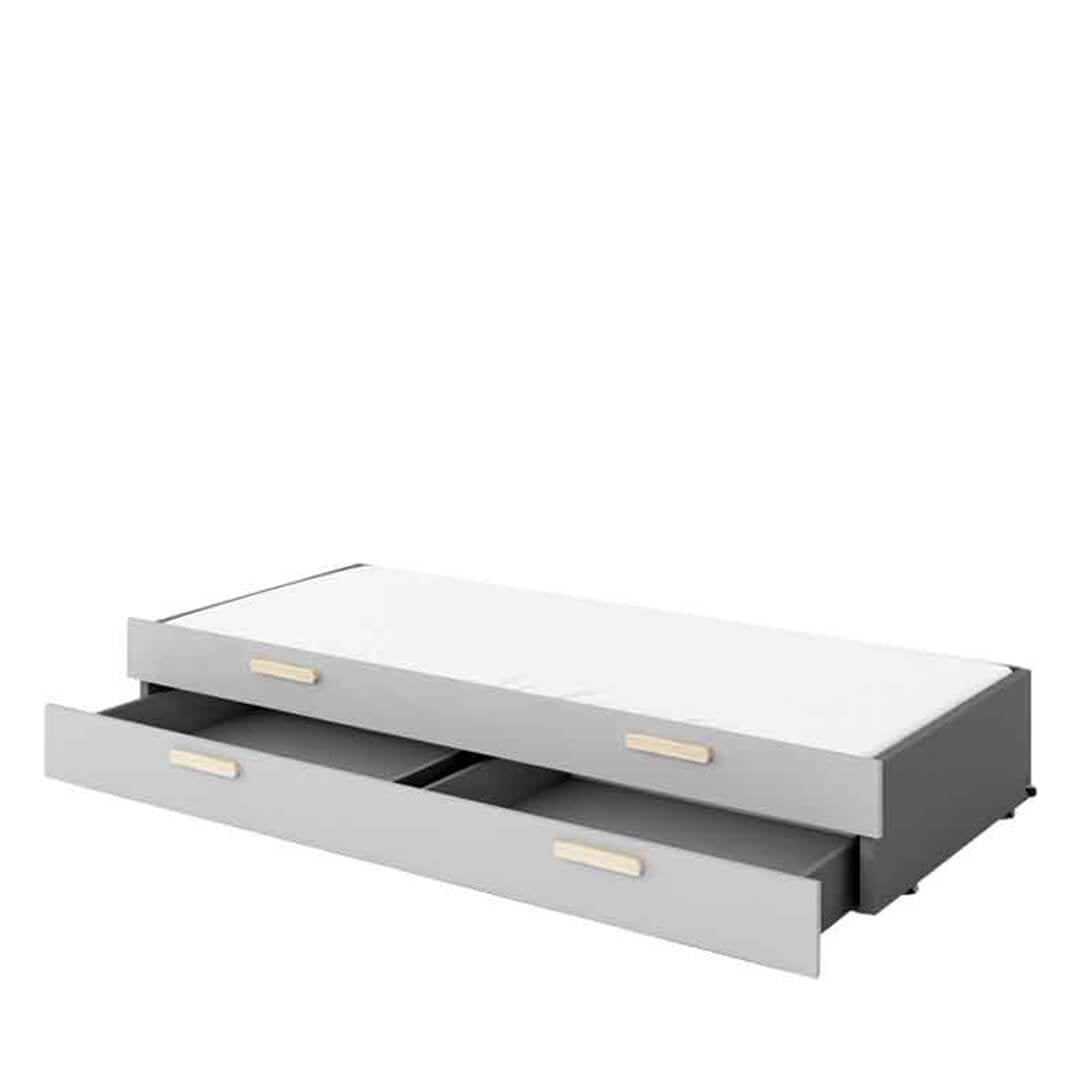 Szuflada na kółkach do skompletowania z łóżkiem PO-13. Szuflada ma dwie części – umieszczony wyżej wysuwany materac piankowy oraz zaplanowany niżej wysuwany pojemnik na pościel.