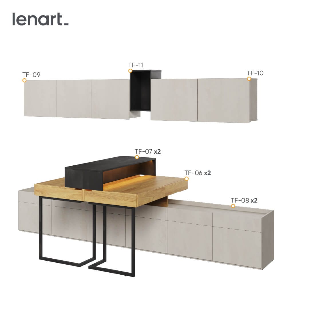 SET-04B mebli z kolekcji TEEN FLEX dla nastolatk贸w sk艂ada si臋 z dziewi臋ciu element贸w: dw贸ch biurek TF-06, dw贸ch nadstawek biurka TF-07, szafek wisz膮cych TF-09 i TF-10, p贸艂ki TF-11 oraz dw贸ch szafek TF-08. Mimo licznej ilo艣ci mebli oferuje maksimum miejsca do przechowywania i 艣wietnie wykorzystuje do tego r贸wnie偶 powierzchni臋 艣cian. Meble do pokoju m艂odzie偶owego z kolekcji TEEN FLEX pozwalaj膮 pu艣ci膰 wodz臋 fantazji w kwestii doboru dodatk贸w, barwy na 艣cianach i aran偶acji ca艂o艣ci pomieszczenia. Ich nowoczesny design i uniwersalna kolorystyka sprawiaj膮, 偶e doskonale sprawdz膮 si臋 zar贸wno dla dziewczynek, jak i ch艂opc贸w, a ponadto pos艂u偶膮 przez lata.