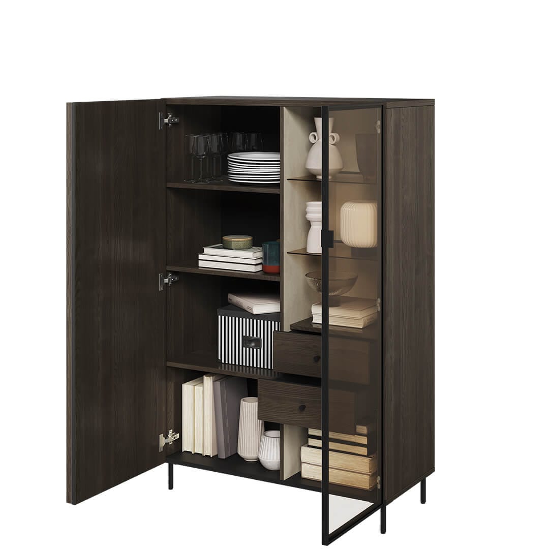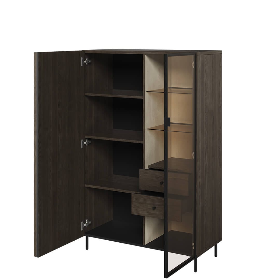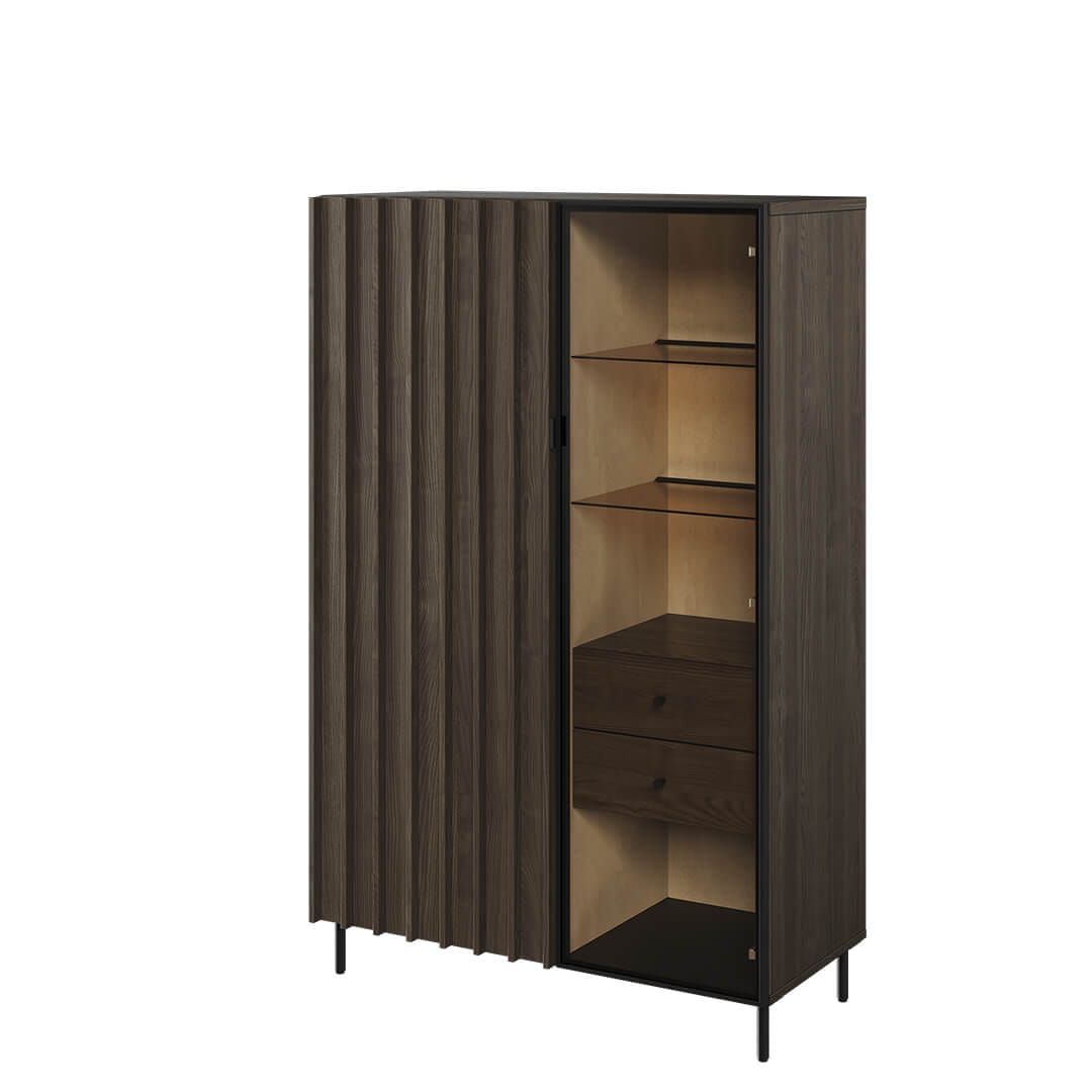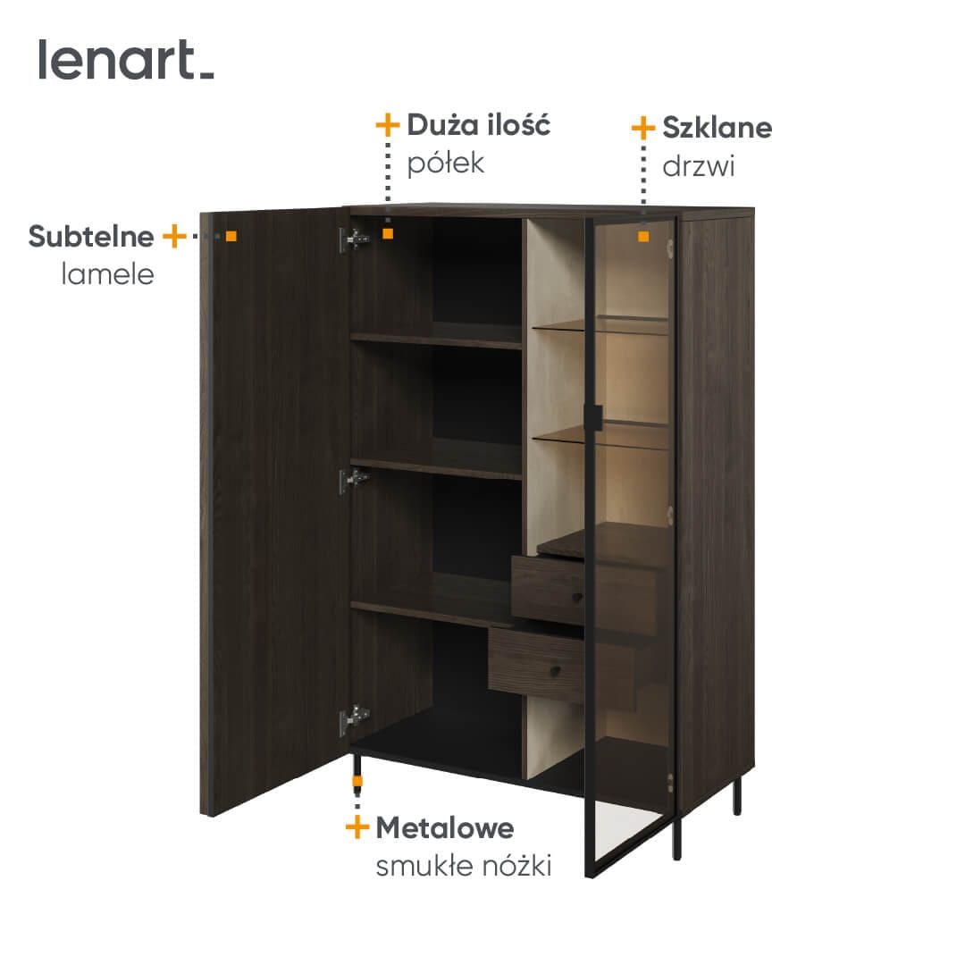 Metalowe smukłe nóżki i subtelne lamele to elementy, dzięki którym salon urządzony w ten sposób szybko Ci się nie znudzi! Ponadto oryginalne połączenie koloru jesion portland z czernią sprawia, że mebel świetnie wpisuje się w aktualnie panujące trendy.