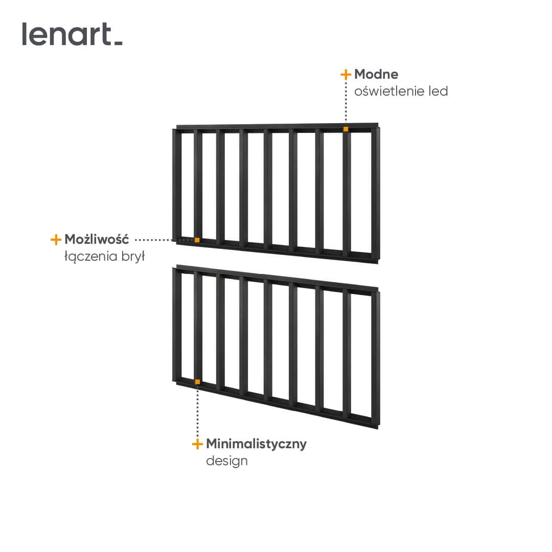 Designerski i niezwykle modny panel za telewizor w postaci lameli z wbudowanym oświetleniem ledowym o energetyzującej pomarańczowej barwie. Świetnie prezentuje się skomponowany z innymi meblami TEEN FLEX. Kolekcja została zaprojektowana z myślą o pokojach nastolatków, którzy kochają niebanalny styl. To co ją wyróżnia to osobliwe połącznie kolorów, minimalizm oraz możliwość łączenia poszczególnych brył w rozmaite zestawy.