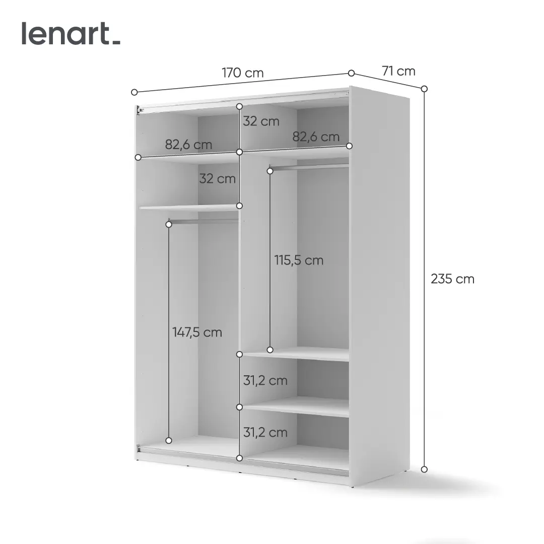 Wprowadź do swojej przestrzeni funkcjonalność i styl dzięki naszej białej szafie o imponującej szerokości 170 cm z lustrem! To nie tylko praktyczne rozwiązanie do przechowywania, ale również designerski element, który uwydatni elegancję Twojego wnętrza. Szafa 170 cm z lustrem to propozycja dla tych, którzy pragną maksymalnie wykorzystać dostępną przestrzeń, jednocześnie dodając lekkości i jasności swojemu pomieszczeniu.